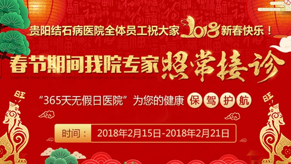 辭舊迎新,春節(jié)將至,在此貴陽結(jié)石病醫(yī)院全體醫(yī)護(hù)人員向大家致以節(jié)日的問候和美好的祝福!祝大家新年快樂,健康平安。