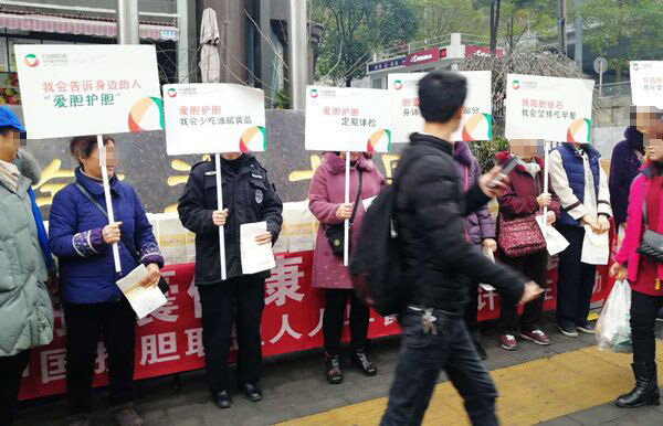 我們?cè)诂F(xiàn)場(chǎng)為市民派發(fā)公益營(yíng)養(yǎng)早餐,宣傳愛膽護(hù)膽知識(shí)。