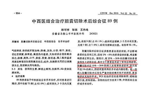 《中西醫(yī)結合治療膽囊切除術后綜合征89例》曾寫到:膽囊切除后會出現與術前一樣的腹痛癥狀,甚至會面臨二次手術的風險